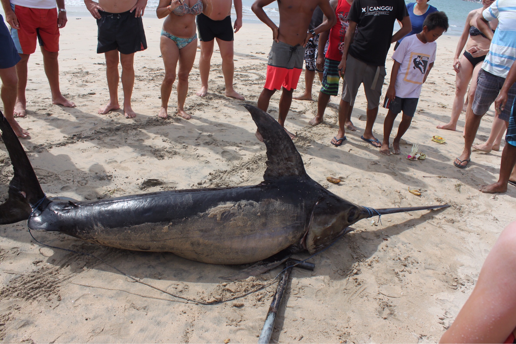 En revenant vers l’hôtel, des pêcheurs ont rapporté ce magnifique espadon récupéré à bout de bras dans la mer juste devant nous :